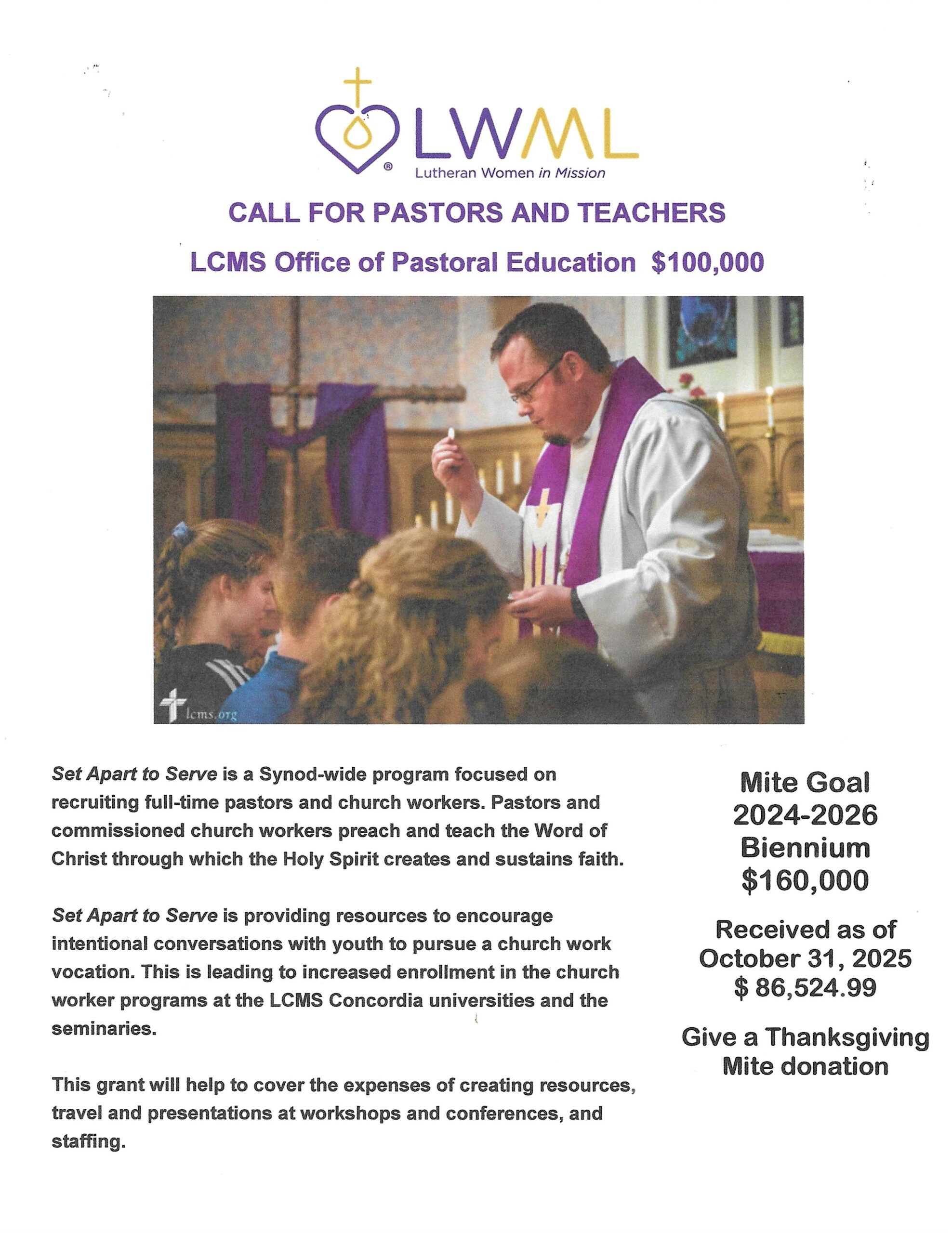 LWML Mission Grant poster for the LCMS Office of Pastoral Education